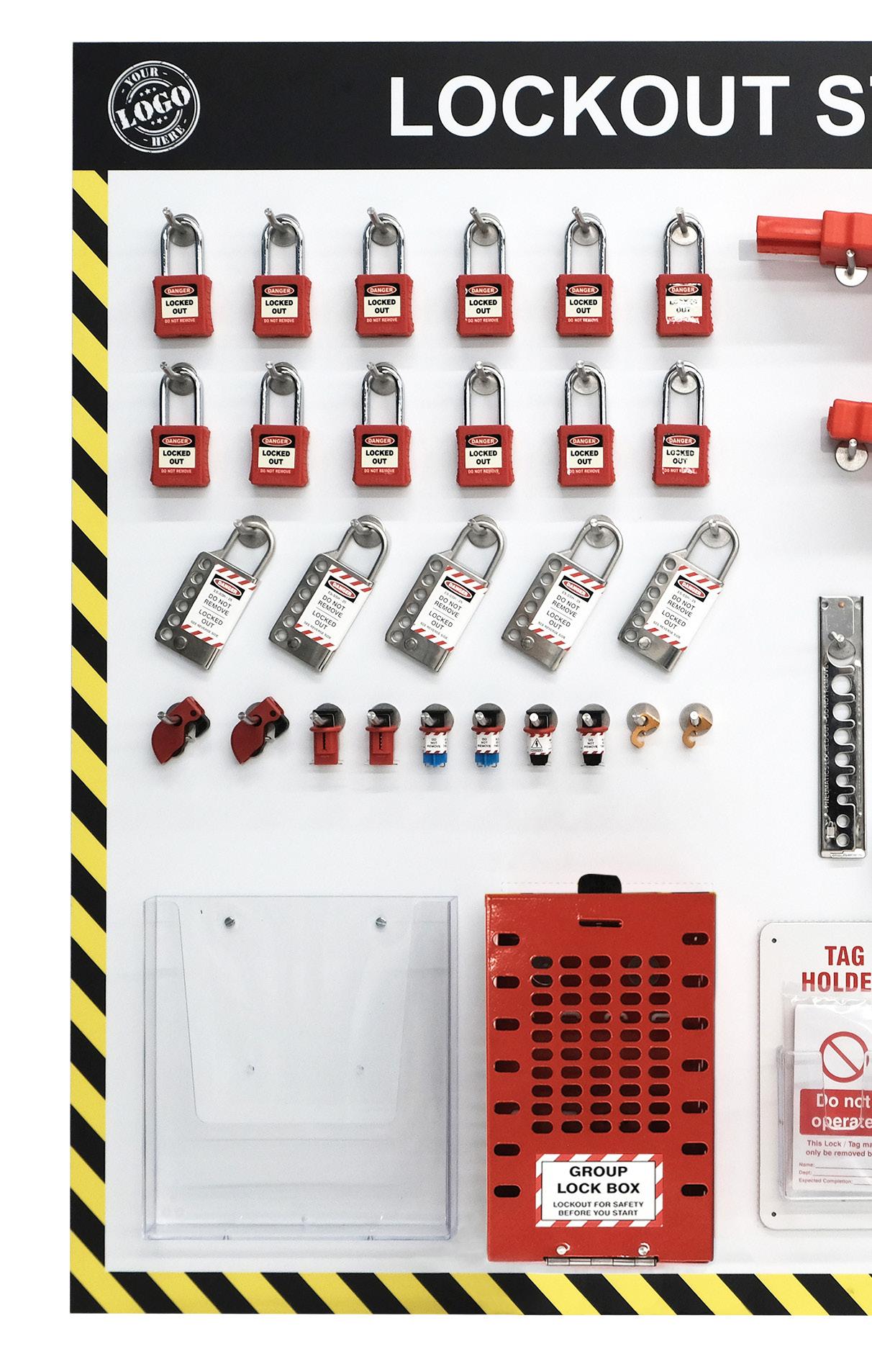 These powder coated metal padlock stations are an ideal method for the storage and display of Lockout safety padlocks.