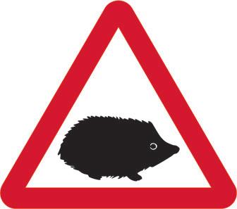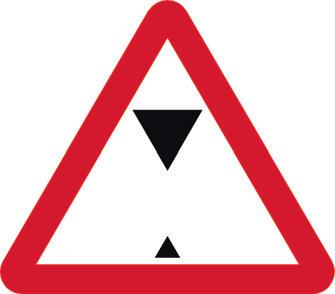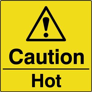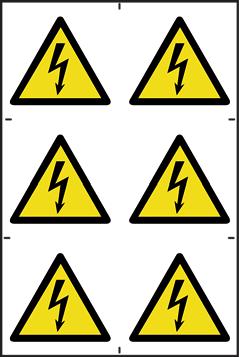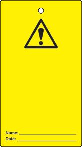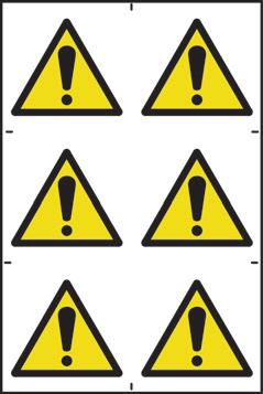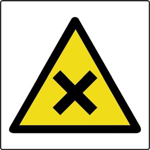 A yellow triangle with a black border and symbol denoting a hazard in the environment.