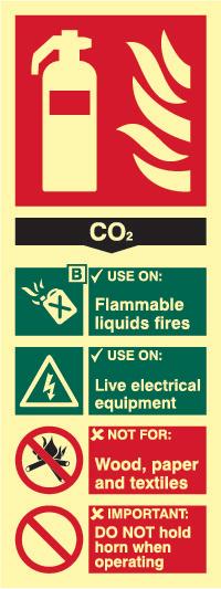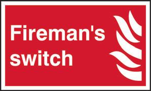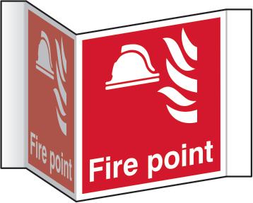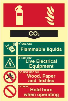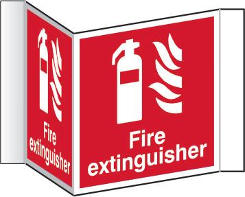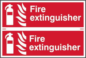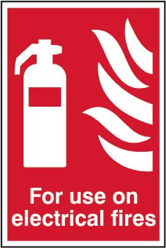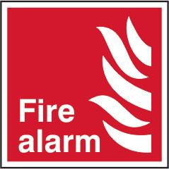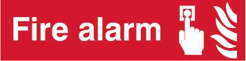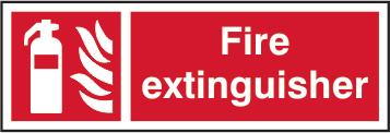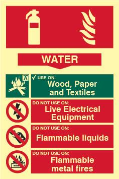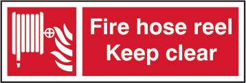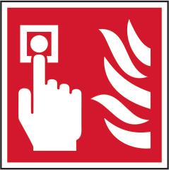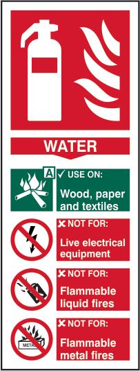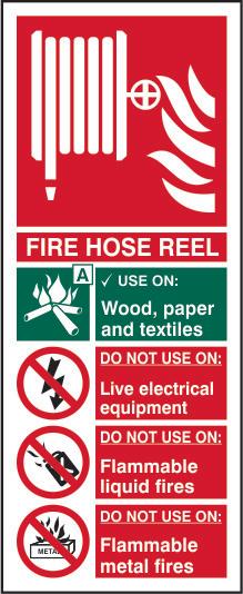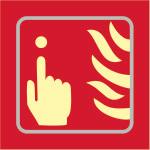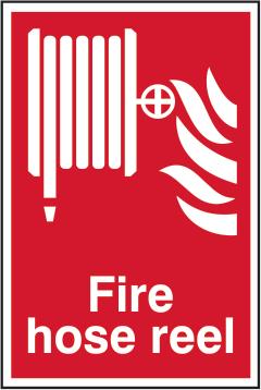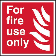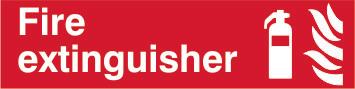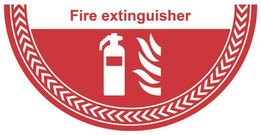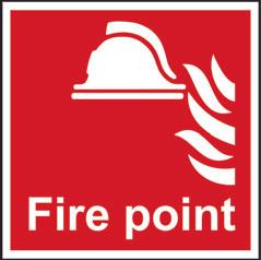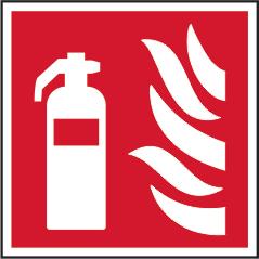 A red rectangle or square with a symbol or text in white providing information about the location and use of fire fighting equipment.