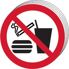 A red circular band with a diagonal bar on a white background. The black symbol behind indicates the prohibited action.