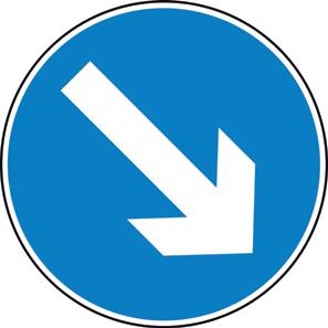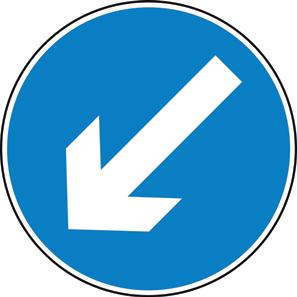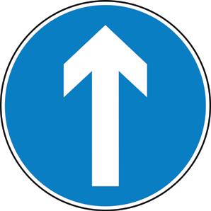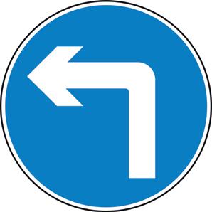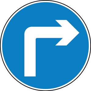 A blue circle containing a white image denoting that a specific course of action must be taken.
