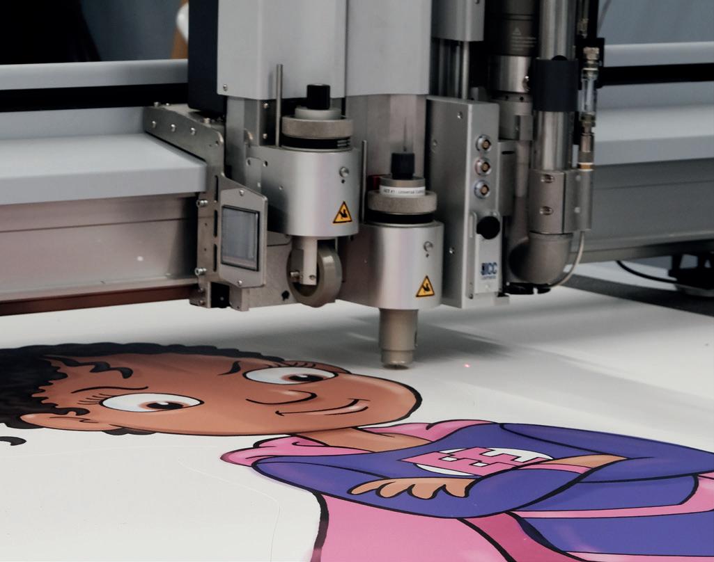 Our state of the art digital cutters use optical recognition software to accurately cut a range of materials. We have a range of different cutting methods available depending on the substrate to be cut, varying from the high-tensile strength knife blades through to diamond cut routers and oscillating blades. The substrates are placed on a tough cut-resistant conveyor bed to increase productivity and ease the job of the operator. This is the ideal partner to our digital print machines.