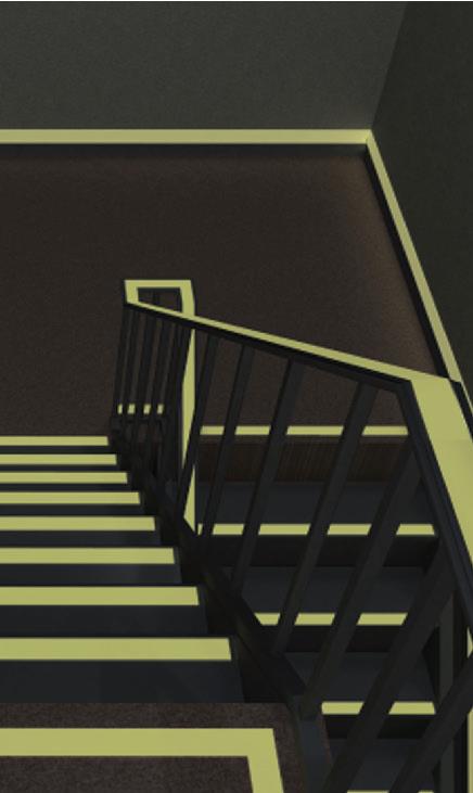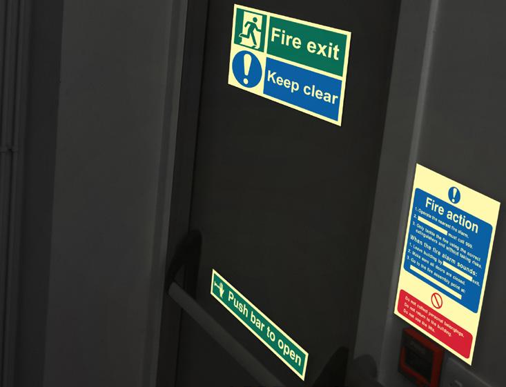 This material glows in dark or low light areas in the event of a power failure or fire. Often specified for Fire Exit signs so that the exit route remains visible.
