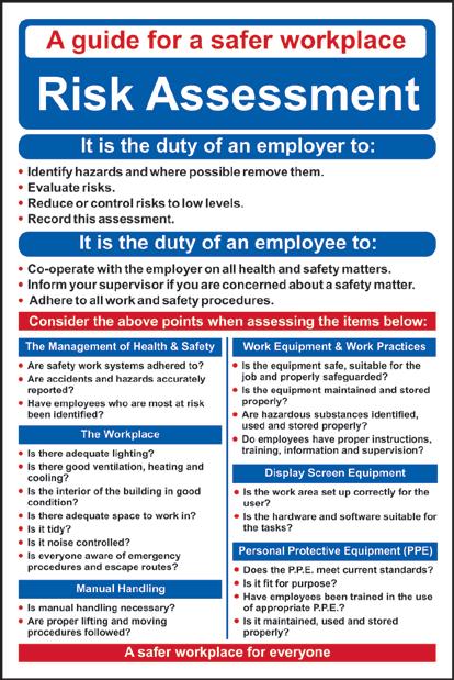With an estimated cost of £16.2 billion to industry due to injuries and ill health in the workplace, employers cannot afford to neglect the fundamentals of health and safety. Creating a culture of safety in the workplace is no mean feat. Broken down, the various health and safety elements you need to consider, implement as well as communicate can seem overwhelming at first glance. However, getting a handle on the basics, sharing the responsibility and making use of the various tools and aids that are available will help you comply with the law and get your health and safety message across. We offer a wide range of products to help improve your workplace health and safety.