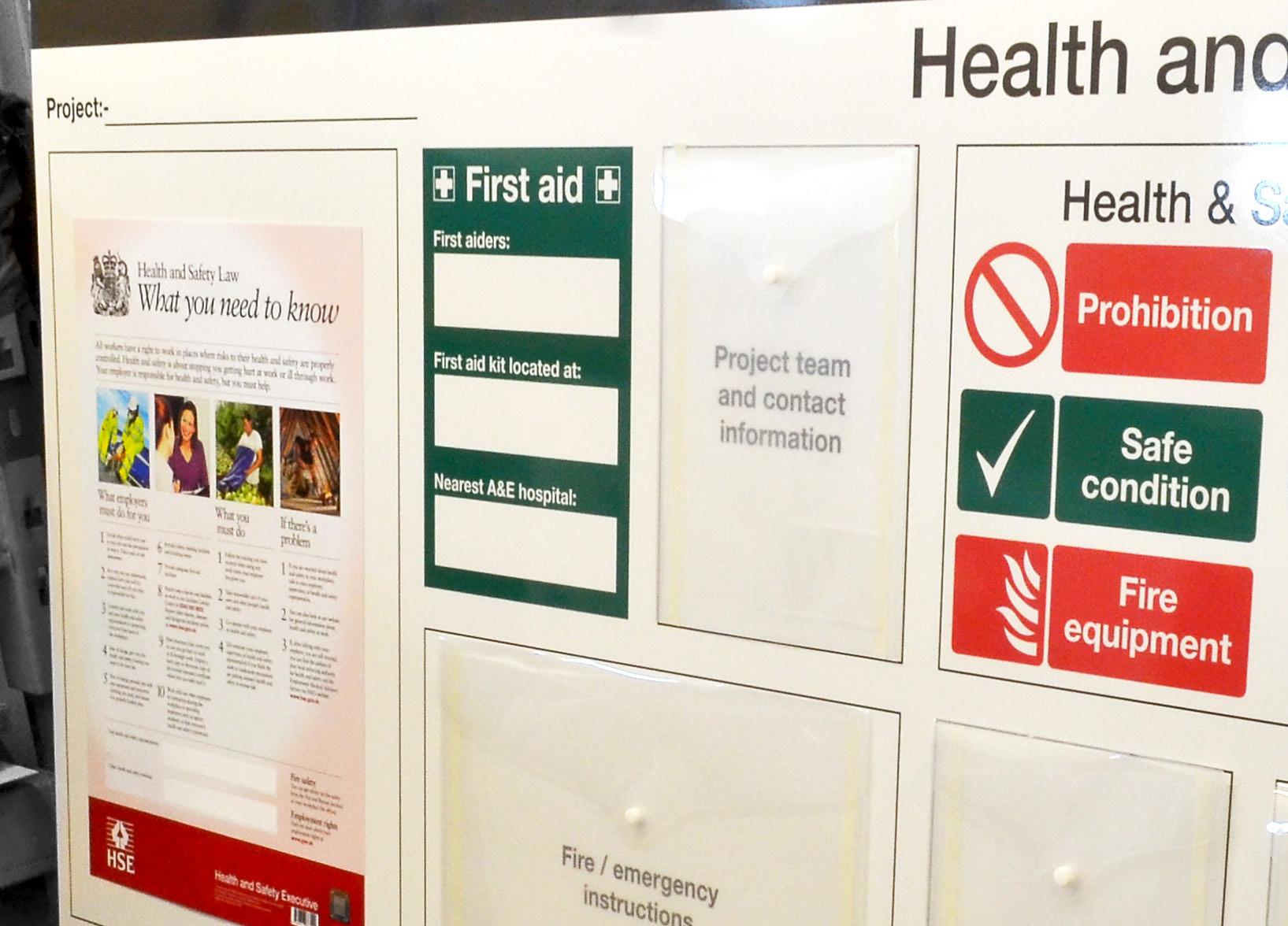 3mm Aluminium composite with anti-scuff laminate complete with 10 x A4 wallets, 2 x A3 wallets and HSE poster