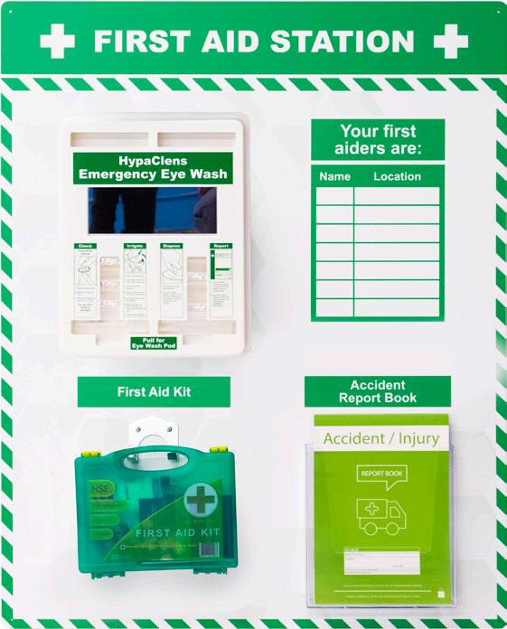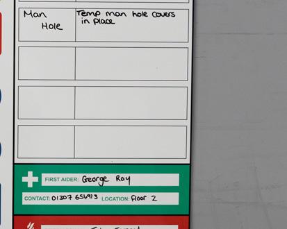 Designed for indoor use, the board is laminated to allow the first aider details to be written and updated directly onto the board with a dry wipe marker.