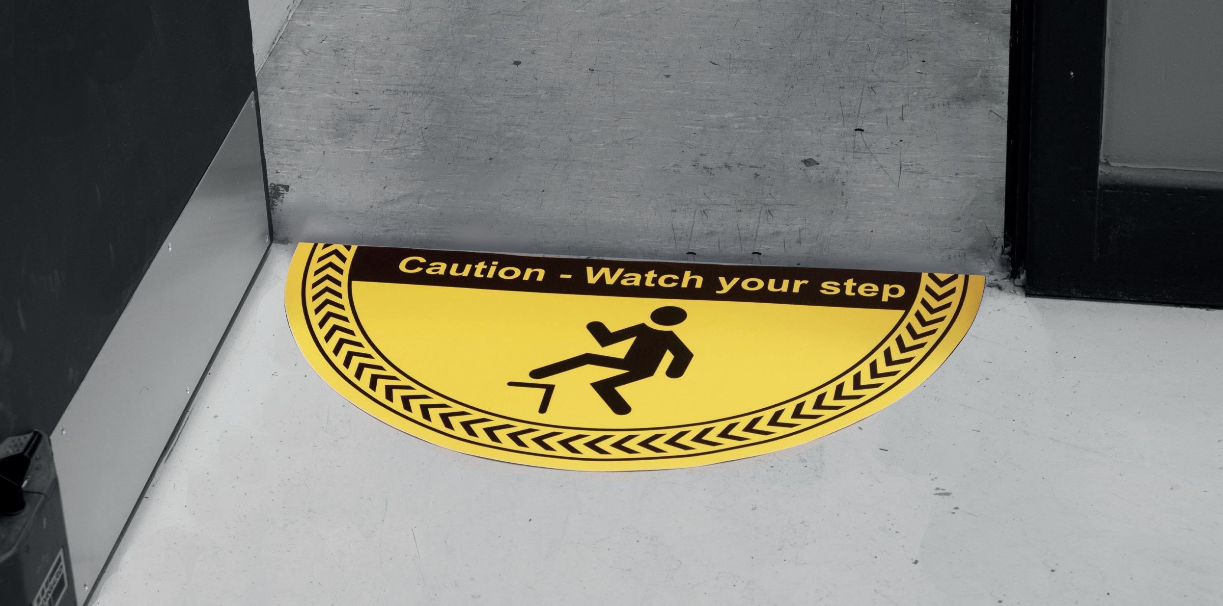 Our floor graphics are digitally printed onto self adhesive vinyl with a permanent adhesive on the reverse. The graphic is then laminated with a clear matt embossed PVC laminate, which is certified to R9 grade for slip resistance. These signs should be applied to sealed flat surfaces such as laminates, painted or varnished floors or whole tiles, and are suitable for dry indoor locations.
