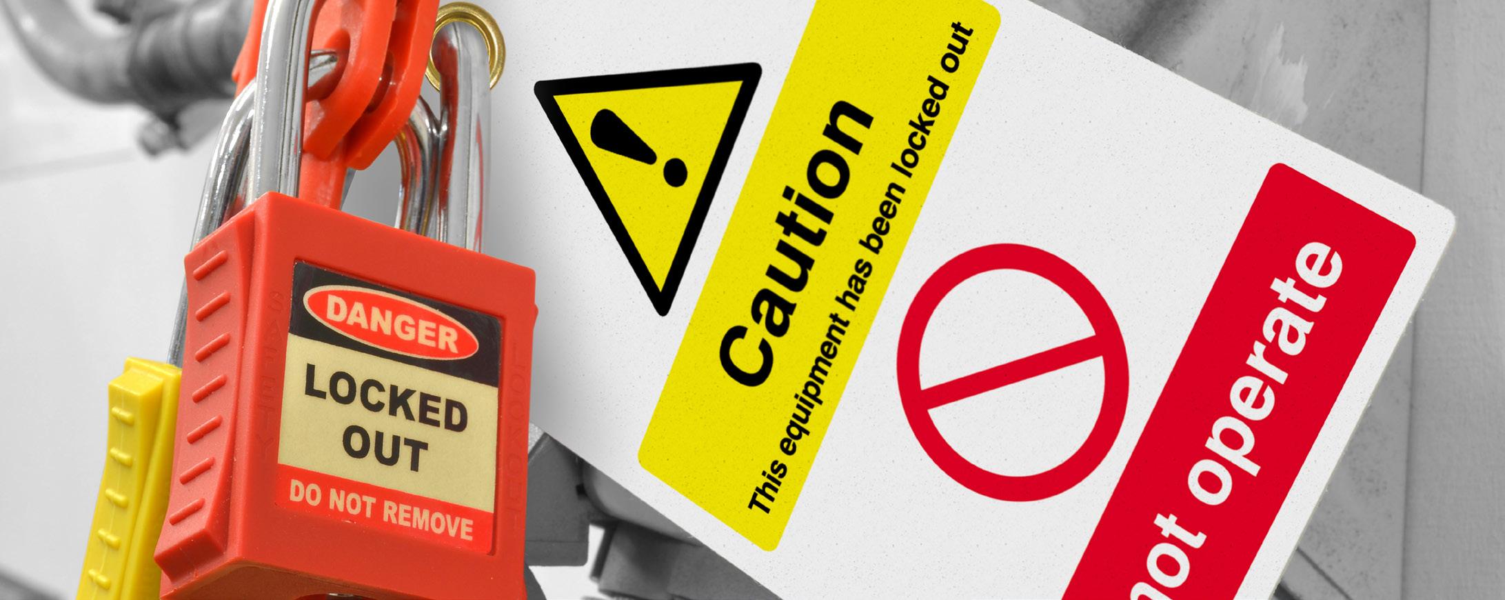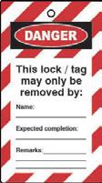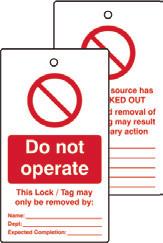 Caution Locked out for safety Double sided 10 pack Produce Code: LOK082