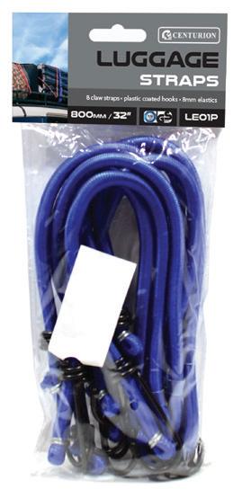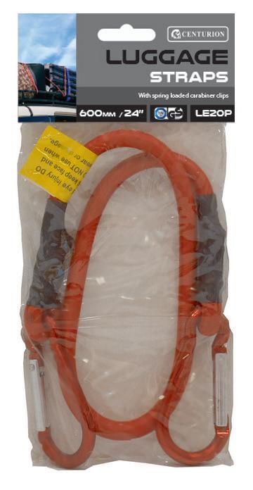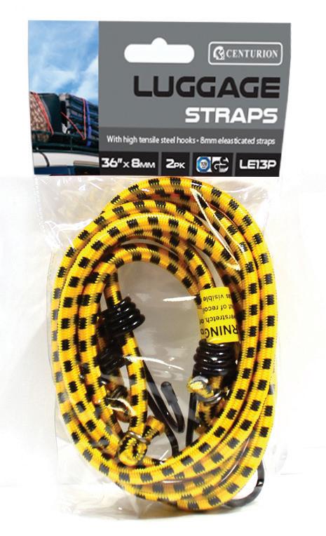 Call: 01302 788700 | Fax: 01302 390004 | Email: sales@centurioneurope.co.uk 12 ALSO AVAILABLE LUGGAGE STRAPS Are an elastic cord commonly used to secure objects without the need for tying knots and absorbing shock. Theses straps are a general utility item therefore not suitable for heavy bulky loads. Our range of straps are available in a variety of lengths and made from high quality cord, are water resistant and UV stabilised making them durable and hard wearing. TUV/GS approved. luggaGe straps PACK SIZE: 2 Pack CATEGORY: Standard Duty STRAP WIDTH: 8mm STRAP LENGTH: 450mm / 18” HOOKS: High tensile steel hooks PRODUCT SPEC LE11P luggaGe straps PACK SIZE: 1 Pack CATEGORY: Standard Duty STRAP WIDTH: 8mm STRAP LENGTH: 600mm / 24” HOOKS: Carabiner Clips PRODUCT SPEC LE20P luggaGe straps PACK SIZE: 1 Pack CATEGORY: Standard Duty STRAP WIDTH: 8mm STRAP LENGTH: 900mm / 36” HOOKS: Carabiner Clips PRODUCT SPEC LE21P luggaGe straps PACK SIZE: 1 Pack CATEGORY: Standard Duty STRAP WIDTH: 8mm STRAP LENGTH: 1200mm / 48” HOOKS: Carabiner Clips PRODUCT SPEC LE22P 8 arm Spider luggaGe straps PACK SIZE: 1 Pack CATEGORY: Standard Duty STRAP WIDTH: 8mm STRAP LENGTH: 800mm / 32” HOOKS: Plastic coated claw hooks PRODUCT SPEC LE01P luggaGe straps PACK SIZE: 2 Pack CATEGORY: Standard Duty STRAP WIDTH: 8mm STRAP LENGTH: 600mm / 24” HOOKS: High tensile steel hooks PRODUCT SPEC LE12P luggaGe straps PACK SIZE: 2 Pack CATEGORY: Standard Duty STRAP WIDTH: 8mm STRAP LENGTH: 900mm / 36” HOOKS: High tensile steel hooks PRODUCT SPEC LE13P