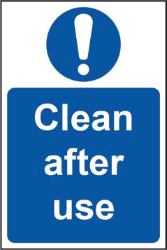To manage regular cleaning of the setting, use cleaning management whiteboard signs to feature who last cleaned when.