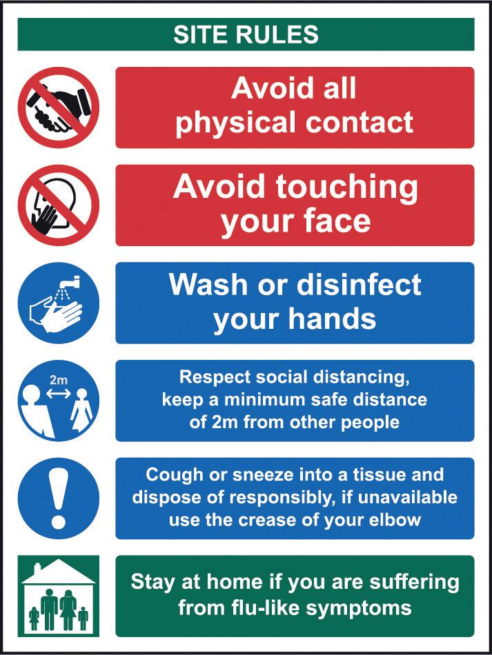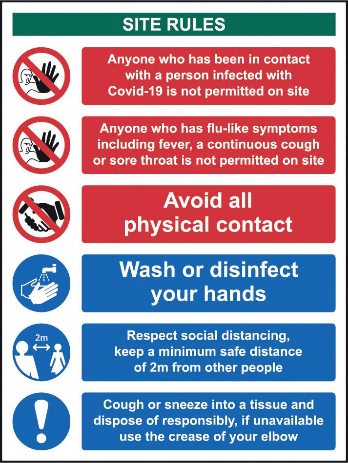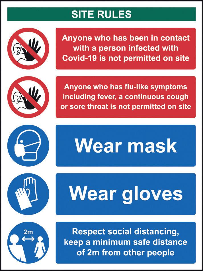 Request that people do not enter the site if they are displaying symptoms or have come into contact with anyone with covid-19