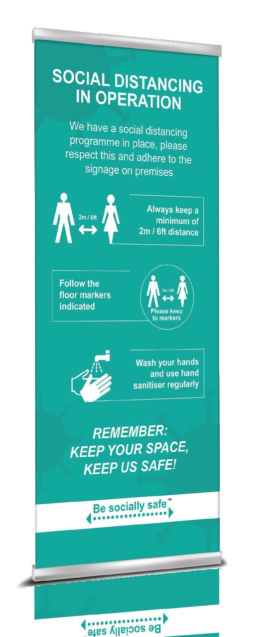 Pull up Banners SOCIAL DISTANCING IN OPERATION We have a social distancing programme in place, please respect this and adhere to the signage on premises Keep a safe distance Keep a safe distance Keep a safe distance Always keep a safe distance from others Wash your hands and use hand sanitser regularly Follow the floor markers indicated We have a social distancing programme in place, please respect this and adhere to the signage on premises PLEASE KEEP A SAFE DISTANCE SOCIAL DISTANCING IN OPERATION Ref Description Colour Size Code Pk A Social Distancing - Please keep 2m apart Blue 850 x 2000mm STP700 1 B Social Distancing in operation - Keep 2m apart Turquoise 850 x 2000mm STP701 1 C Social Distancing - Please keep 2m apart Blue 850 x 2000mm STP702 1 D Social Distancing - Please keep a safe distance Blue 850 x 2000mm STP703 1 E Social Distancing in operation - keep a safe distance Turquoise 850 x 2000mm STP704 1 F Social Distancing - keep a safe distance Blue 850 x 2000mm STP705 1