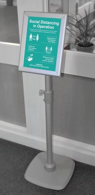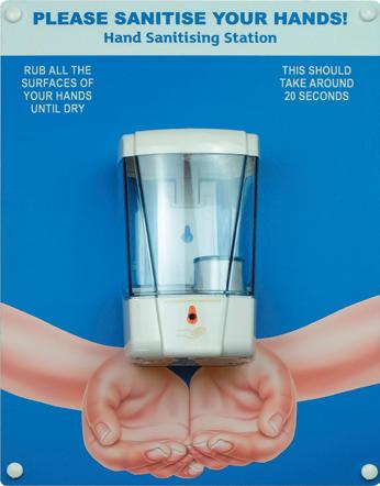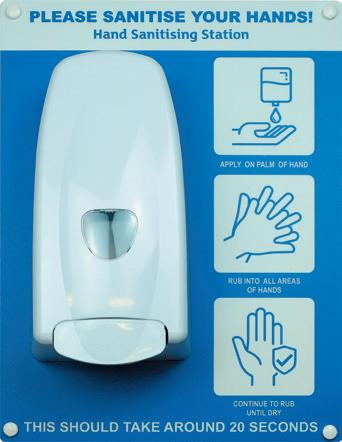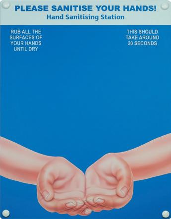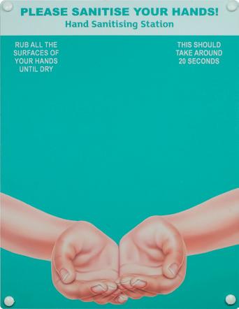 For more information on custom designs please contact your supplier of Spectrum Industrial Signage. CONTENTS FLOOR & SEAT GRAPHICS 5 WALL, FLOOR & STAIR GRAPHICS 9 TAPES 11 STENCILS 12 POSTERS, ENTRANCE & GENERAL SIGNS 13 BANNERS, POST SLEEVES & STICKERS 17 TEMPORARY OUTDOOR SIGNS 18 PULL UP BANNERS 19 HYGIENE & PPE SIGNS 21 DISPLAY ACCESSORIES 24 SANITISER STATION 25 FOOT OPERATED SANITISER UNIT 26 SOCIAL DISTANCING & HYGIENE SIGNAGE FOR EDUCATION 27