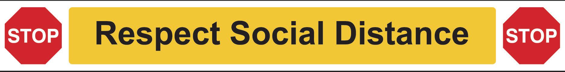 Position around your premises to remind people to keep their distance. Description Size Code Pk STOP Respect Social Distance 800 x 100mm STP185 1