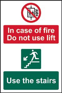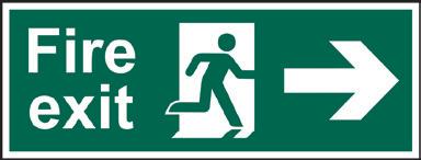 Before 2013 the traditional emergency sign used above doorways to identify the escape route, pictured a DOWN arrow. Under BS EN ISO 7010 the DOWN arrow should be used to identify a change of level going down.