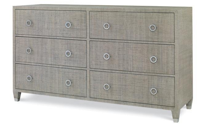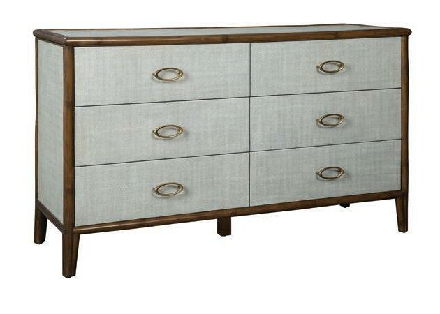 Woven sea grass trim on Oak solids Beveled mirror glass. Thomas O’Brien Collection