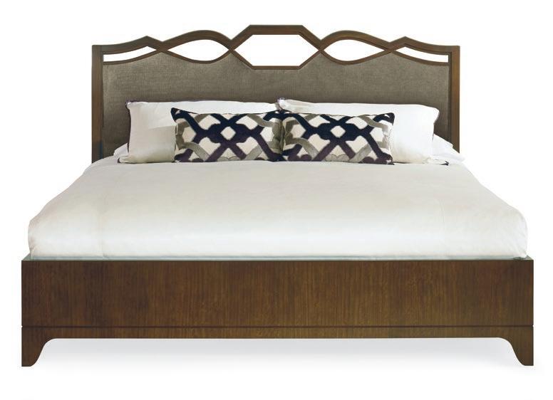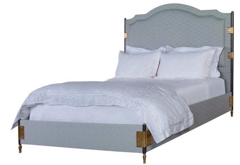 Fully upholstered straight top, with ogee wings 79” Tall, hammered brass feet. *Part of Details Wing Bed Program. For more program options please see pages 100-101