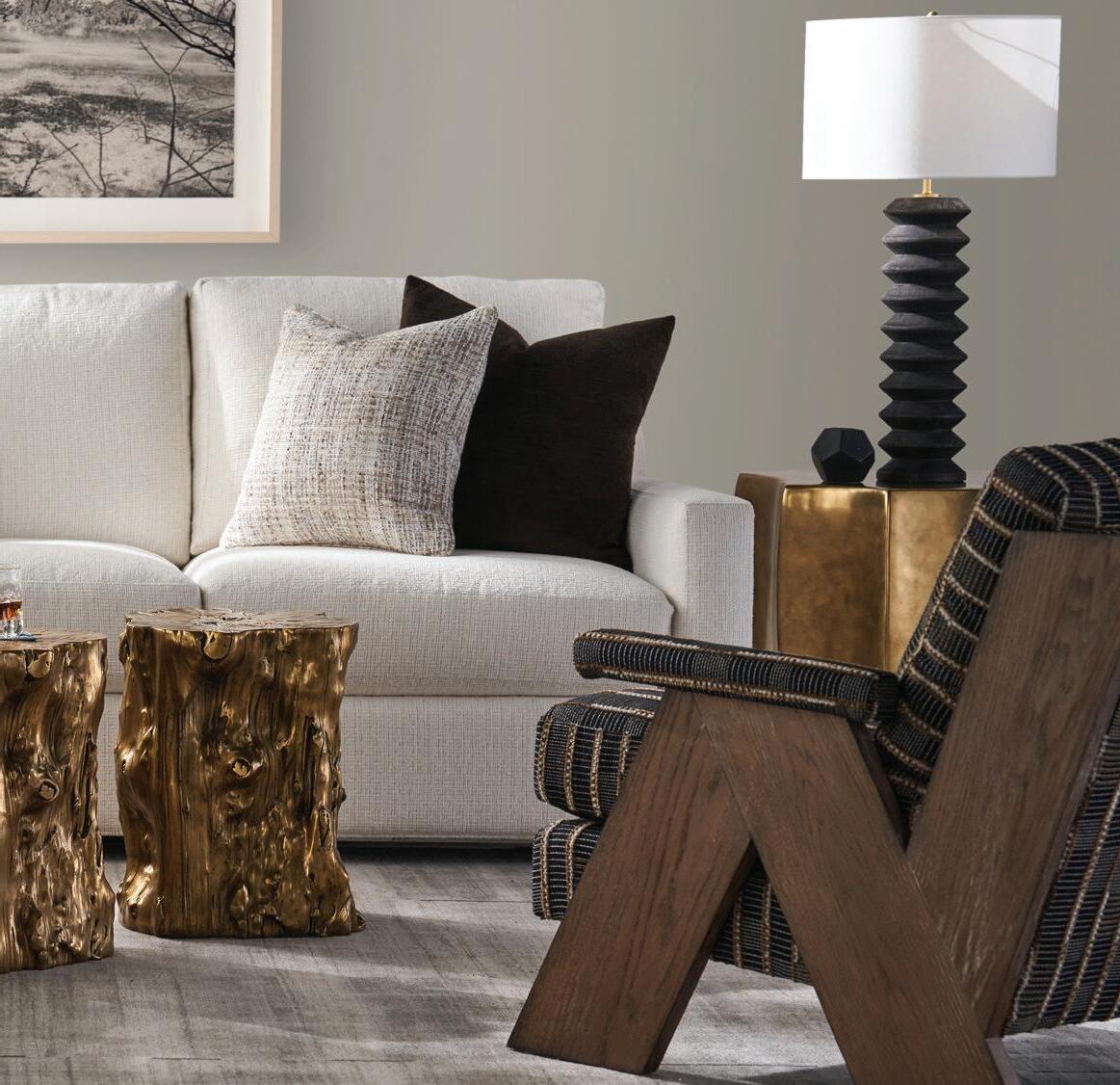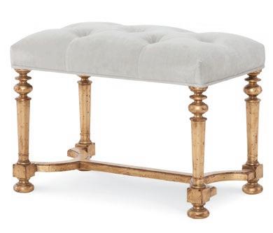 Base Finish: Gold Leaf on Acacia Seat in Taupe Velvet Fabric