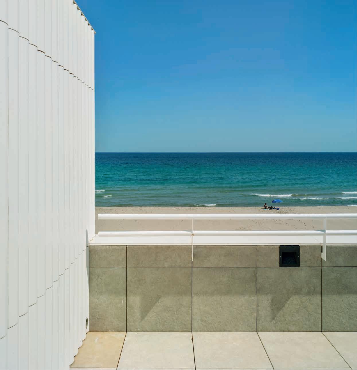 “Casa frente al mar (Casa di fronte al mare)” di Martín Lejárraga a Murcia. Concettualmente, l’intervento si sviluppa su due piani diversi dal punto di vista funzionale e materiale. Quello inferiore, a contatto con la sabbia e i bagnanti, è duro, strutturato e ruvido, realizzato con un reticolo di ceramica. Il piano superiore, più chiuso e astratto, è carat-