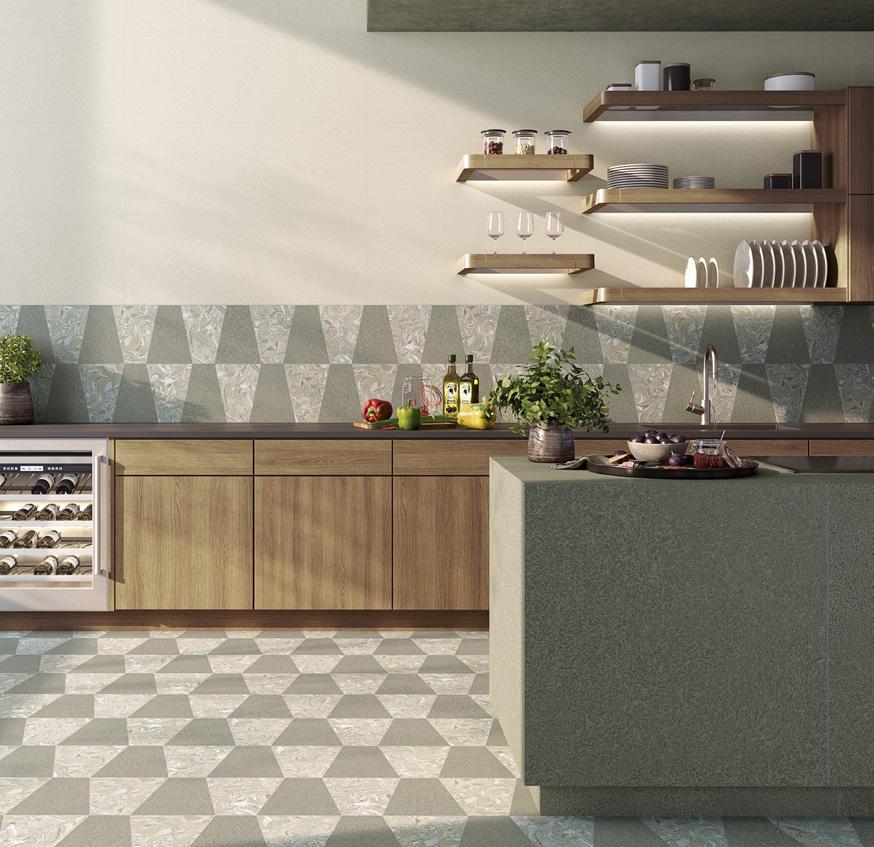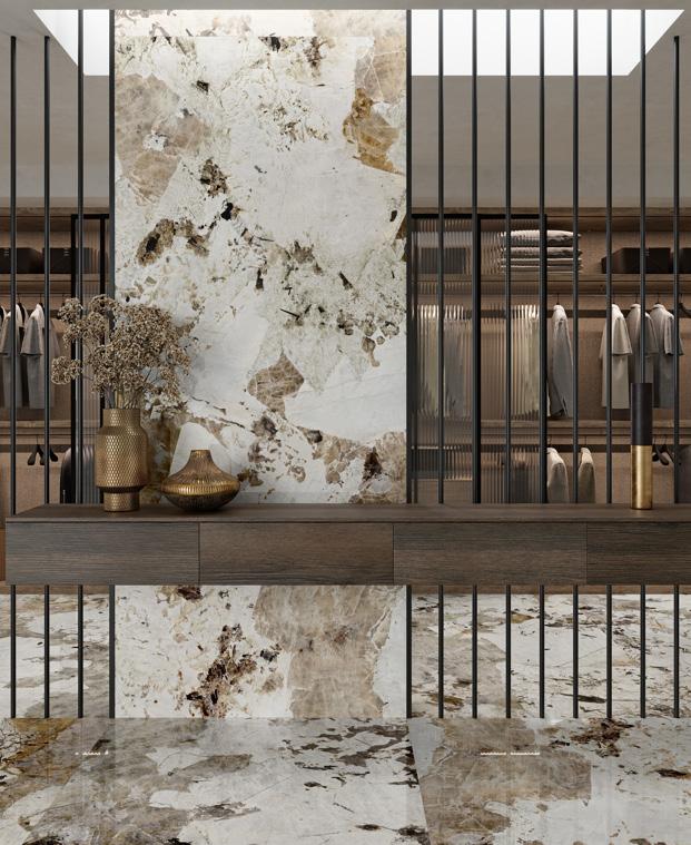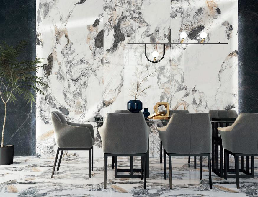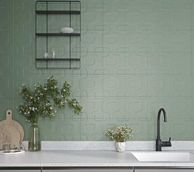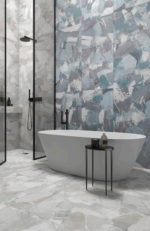 Contemporary tile design thrives on format flexibility. From elongated planks to geometric shapes and ultra-thin panels, digital manufacturing techniques support a wide variety of non-traditional sizes. These unique formats enable dynamic layouts and bespoke designs, especially when paired with highresolution printing that aligns perfectly with the tile’s shape. The ability to create custom or modular systems – where formats interlock or alternate – adds versatility to architectural and interior applications alike.