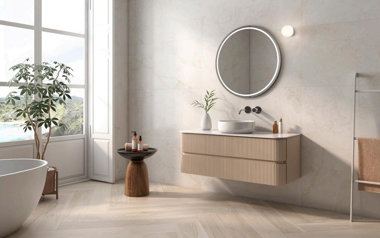 Advanced digital printing is revolutionising the way natural stone is interpreted in ceramic form. By expanding the number of ceramic inks used in production, especially a broader range of neutral tones, tile manufacturers can now replicate the complexity and variation of real stone with extraordinary precision. These innovations make it possible to capture not only the intricate veining and tonal shifts of materials like marble and limestone but also the organic imperfections that lend authenticity. Combined with matching surface textures, these stone-effect tiles offer a convincing, sustainable alternative to real stone.