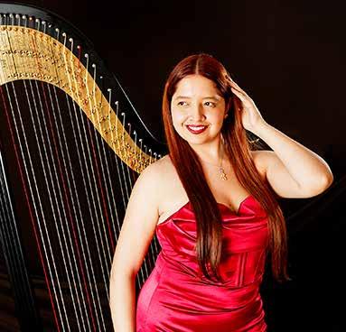 Arpista veracruzana principal de la Orquesta Filarmónica del Estado de Querétaro, ganó el concurso internacional Zagreb Harp Competition y ha tocado como solista con destacados directores. Representó a México en escenarios de la onu en Nueva York, la Konzerthaus de Berlín y el Festival Internacional Cervantino.