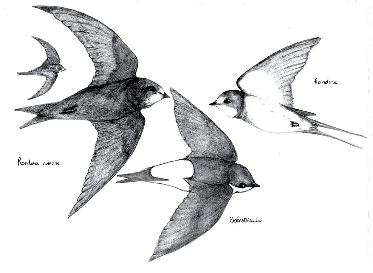 Per iniziare il nostro viaggio è necessario saper distinguere la Rondine (Hirundo rustica) dalle specie che le assomigliano per abitudini e dimensione. Rondone (Apus apus) e Balestruccio (Delichon urbicum) frequentano gli stessi ambienti, nidificano nei pressi delle nostre abitazioni e sono spesso confuse con le Rondini.