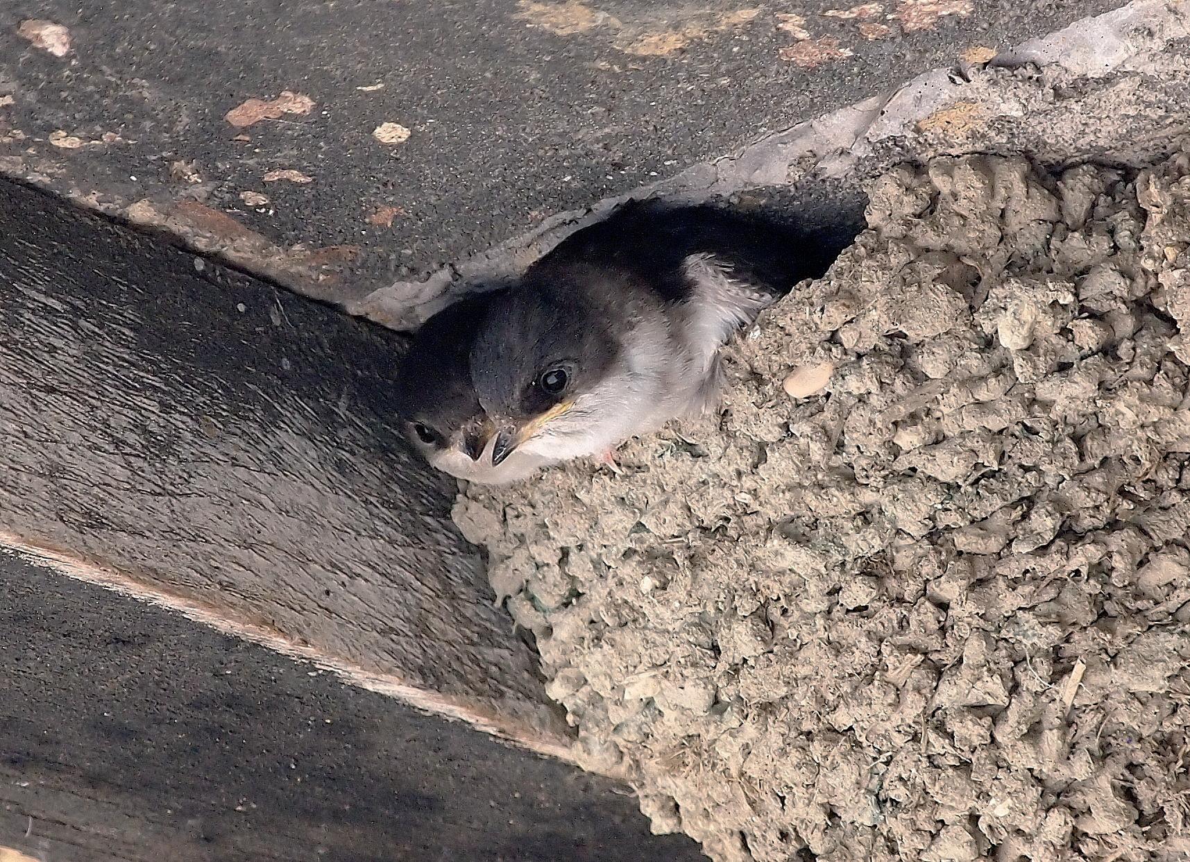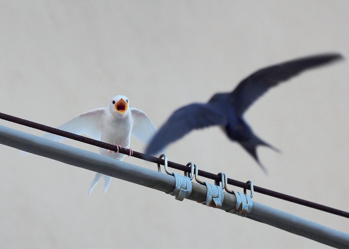 Rondine albina imbeccata dal genitore - Sigillo (Perugia)