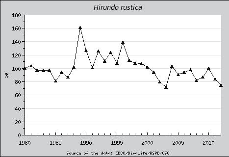 Il massiccio uso d’insetticidi e il cambiamento delle pratiche di allevamento, soprattutto per le mucche da latte, hanno contribuito alla scomparsa della Rondine in molte aree ed una forte diminuzione del numero di individui nelle zone dove ancora sono presenti. I dati raccolti in tutta Europa mostrano un evidente declino della specie negli ultimi 30 anni.