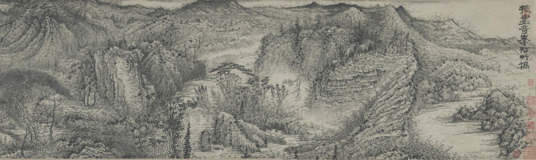 The variation, bianhua 变化, of brush and ink reflects the dynamics of Yin and Yang, of the ancestral opposites that do not repel each other, whose relationship creates the phenomena of the universe, according to a process of opening and closing, dispersion and accumulation, like breathing, a process that cannot be represented through mimicry. Variation is the basis of the work, from the minute brush stroke to the overall composition, whether calligraphic or pictorial. Shen Zongqian 沈宗骞 (1736-1820) writes in Jiezho'sCollectedStudiesonPainting: