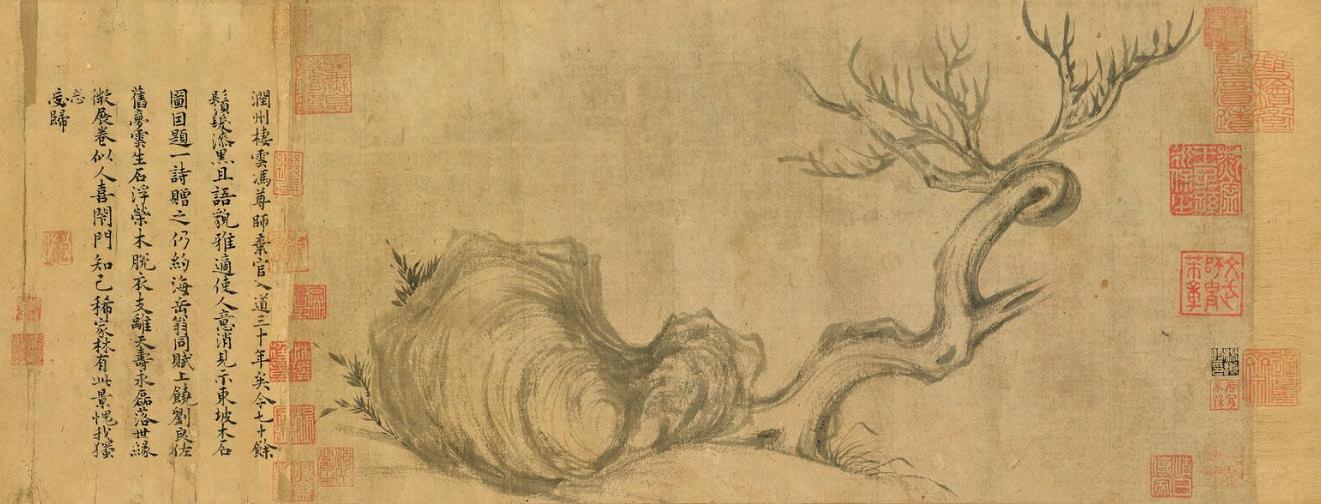 Zhao Mengfu 赵孟頫 (1254-1322), a renowned calligrapher, painter, scholar, theorist, historian and poet, expresses these concepts in the poem ElegantRocksandScatteredTrees《秀 石疏林图》: