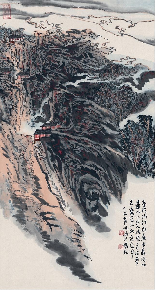 painting. For example, the dot, apparently a simple and insignificant sign, can take on numerous meanings depending on how it is used and in what context. Dong Yuan135, a great 10th century Mountain and Water painter, used to paint mountains in the distance using dots only, as dot or pointillist painters used to do in Europe at the end of the 19th century. In other circumstances, they can be used to represent the texture of nearby rocks, from the trees in the distance to the leaves on the branches a short distance away, moss between the rocks, lichen on the trunks of ancient trees, river pebbles or woods sprouting through the mists. It is not the formal, visual representation that communicates meaning, but the use of a type of stroke consistent with the natural laws and principles of the object, which must therefore be represented not by following visual perception, and mimetic realism but also follows the creative forces that characterise it through the force of the movement of the pictorial or calligraphic gesture (shi 势), which starts from the artist's heart/mind, and is passed through the hand and transmitted to the brush and ink. In this way one will be able to fulfil the first principle of Xie He's painting, which is the generation of a sense of spiritual resonance and vitality. As Shen Zongqian writes: