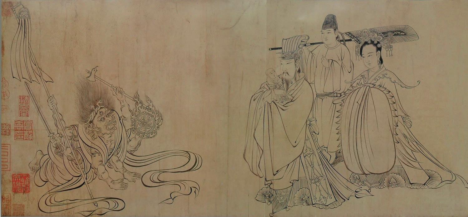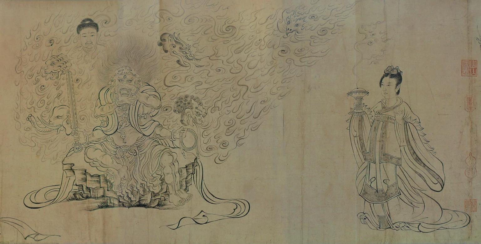 142 Wu Daozi 吴道子 (680-759), highly celebrated educator, calligrapher and painter of the Tang era, named the ‘Sage of Painting' 圣画. Renowned for human and supernatural figures from the Buddhist and Daoist repertoire, flowers, plants, birds, animals and landscapes, and his wall paintings are famous.