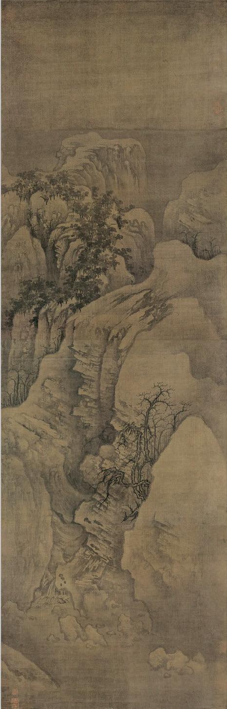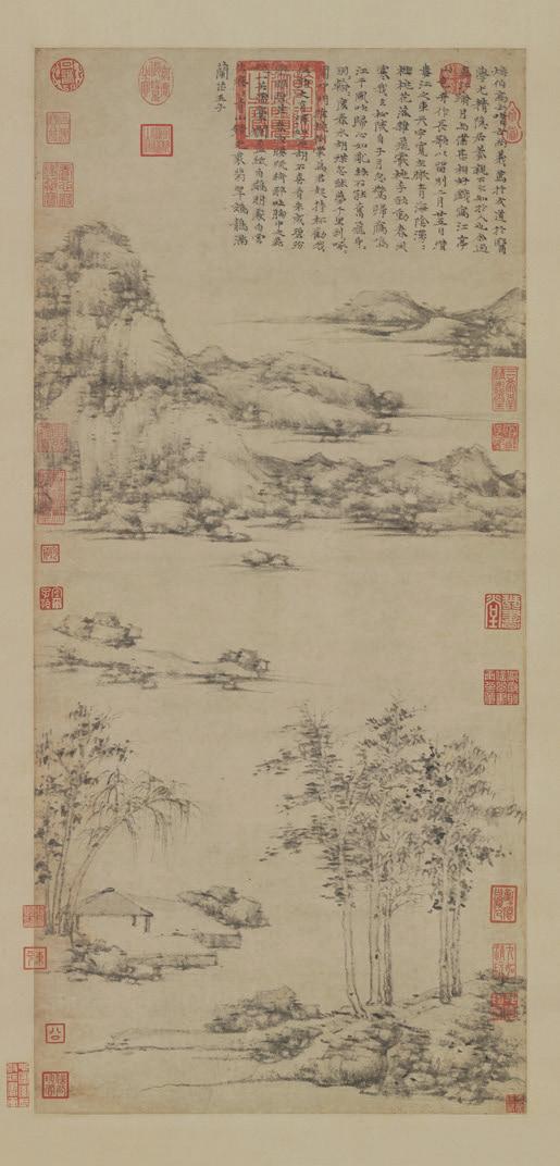 The method (Dao ) that characterises the relationship between brush and ink is totally dependent on force (shi). The force being that movement of going and returning, of opposition or abandonment, nothing more. [...] All creations have different forms, whose variations have multiple aspects, all of which are closely related to the life breath (qi) that takes on the charm of vitality. This is what is called force (shi). In the discussion of the six principles of painting, the first is called the sense of resonance and vitality, and this is what it means. When we speak of the vital force and movement of the brush, we are referring to that force that goes to represent the intrinsic qualities and characteristics of the object. [...] The conformation of mountains and the shape of 135 Dong Yuan 董源 (10 th c.), together with Li Cheng 李成 and Fan Kuan 范宽, was one of the ‘Three Great Northern Song Masters' 北宋三大家. A minister and painter, he was a master of Mountains and Waters, but also painted figures and animals.