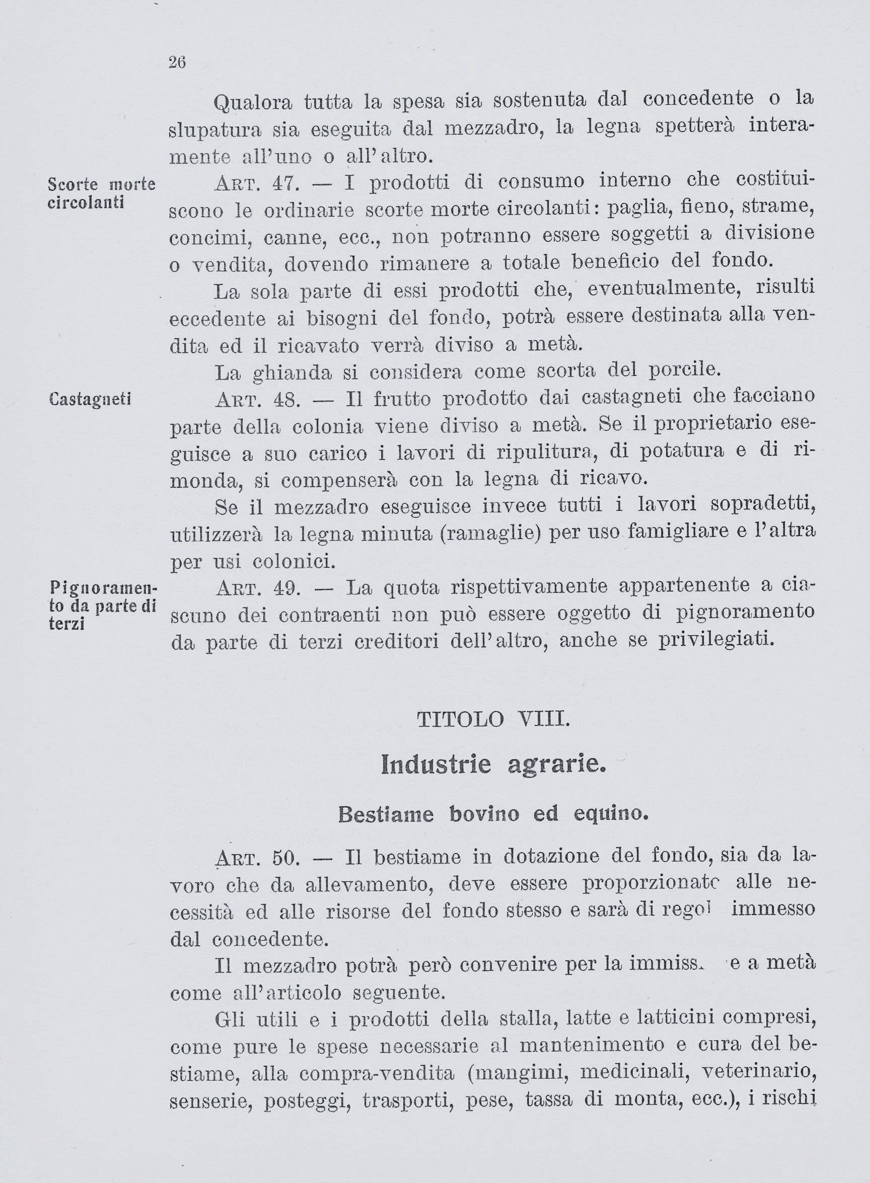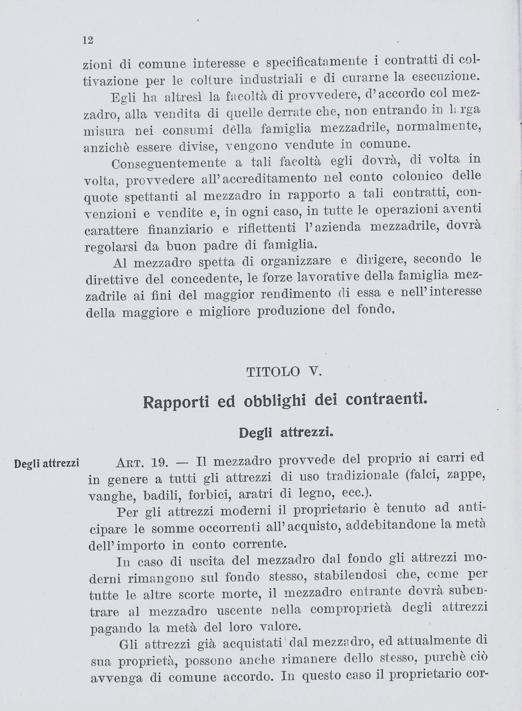 (Patto Generale di Mezzadria e Esempi di libretti dei conti sociali -Vedere Appendice)