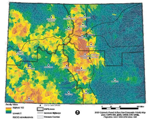 factors, have caused an increase in size, severity and duration of wildfires. Fires are expected to continue getting worse. A 50% to 200% increase in the area burned in Colorado each year is projected by 2050, according to the 2017 Colorado State Forest Service and Colorado Water Conservation Board report “Forest Management to Protect Colorado’s Water Resources.”