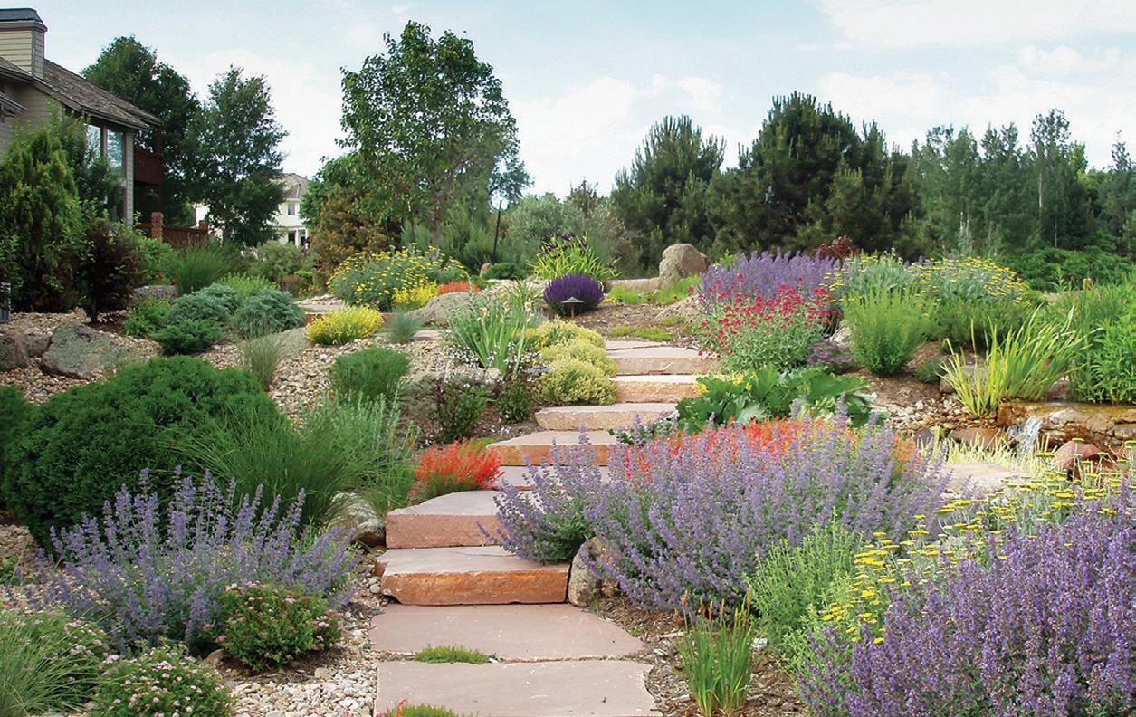 Un jardín diseñado bajo la guía de ColoradoScape utiliza plantas de uso racional del agua. Niwot, Colorado.