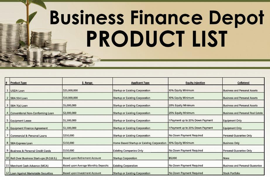 On the front Cover of this issue, we have b usiness finance d epot – franchise financing Specialists assisting with financing fitness and franchises, b usiness finance d epot (bfd) specializes in providing financing for new and existing franchisees, helping them to acquire the capital they need to launch or grow their business. You can read more about this on page 10.