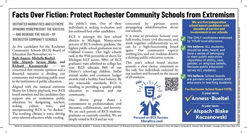 “Part of our goal was to modernize our agreements and bring our rate for paying for operational services at the library into parity,” Morian said. “Now that the city of Rochester Hills has approved a 10-year increase in the amount of 0.39, that changes the amount of revenue that community is raising. The library board let both of our community partners know that if the millage was approved in Rochester Hills, a proportional ask would be made of each of the contract communities.”