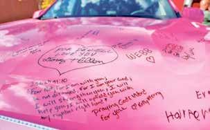 Kleimola said that so many people have been participating in the event each year that this year, instead of a Ford Explorer, the department had a larger Chevrolet Tahoe wrapped in pink to allow for more space for the public to sign.