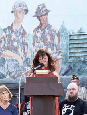 National POW/MIA Recognition Day Ceremony at Oakland Hills Memorial Gardens in Novi on Sept. 19. NEAR LEFT: Doug Pickel, a civilian craftsman and member of Rolling Thunder, speaks of the importance of families of missing service members knowing that others care.