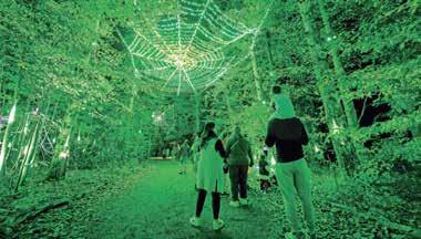 ence begins as guests walk under a large digital sign with an image of a clock and the haunting theme on it. They then begin the 1-mile walk along an enchanted forest trail filled with eerie delights, such as witches, skeletons, pumpkins, coffins and more.