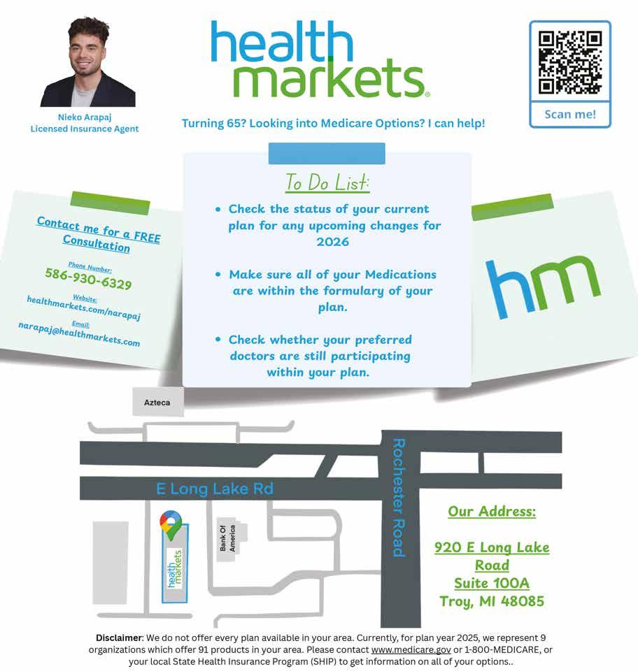 MI Options Medicare Assistance Program: Get free unbiased counseling during enrollment period (ends Dec. 7), one-on-one appointments available by phone, virtually or in person, (248) 262-0545, find locations at ageways.org/calendar