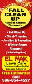 *SnowRemoval *FullSaltingServices *FullLandscaping/Design *FallClean-up &DebrisRemoval *Aerating&Thatching. brighthorizonservices.biz 586-489-9226 DON'S LAWNSERVICE -LeafClean-up -GutterCleaning -SnowRemoval Since1979!