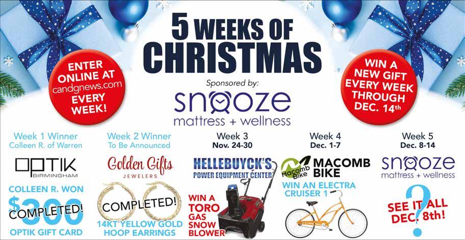 Christmas Big Give: Free gifts for Macomb County families in need, noon, Lakeside Assembly of God, 46155 Schoenherr Road in Shelby Township, register or volunter at lakesideag.org/biggive, (586) 7261120