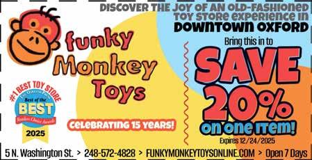 Downtown Rochester Cookie Stroll: Collect treats from 14 businesses, morning session from 10 a.m.-2 p.m. and afternoon session from 2-6 p.m., order event tin and see participants at downtownrochestermi. com, pick up by Dec. 4 at DDA’s Downtown Collaboration Studio, 431 Main St.