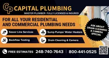 •DrainCleaning •SewerCamera •WaterHeaters •SumpPumps •BackflowTesting 248-542-8022