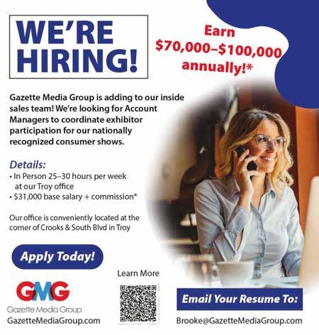 Register by Feb. 2 in person at Troy Community Center or online at rec.troymi.gov/catalog.