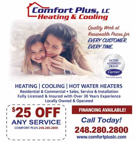 EAPLUMBING ANDDRAIN FullServicePlumbing. DrainCleaning,Sump Pumps,WaterHeaters, Leaks,Disposals, CameraInspections, BackflowTesting andMore. 586-477-7777 License#8005101 Plumbing WATERWORK Plumbing.com •DrainCleaning •SewerCamera •WaterHeaters •SumpPumps •BackflowTesting 248-542-8022