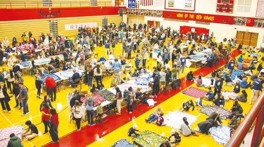 At the end of the program, volunteers moved into the gym to complete service projects such as arranging hundreds of blankets and hygiene packages for those in need, as well as hundreds of activity bags and care packages for children at Children’s Hospital in Troy, and friendship bracelets for kids at Grace Centers of Hope. The items in the packages were donated by residents of the district. The Red Cross was also in attendance for those who wanted to donate blood.